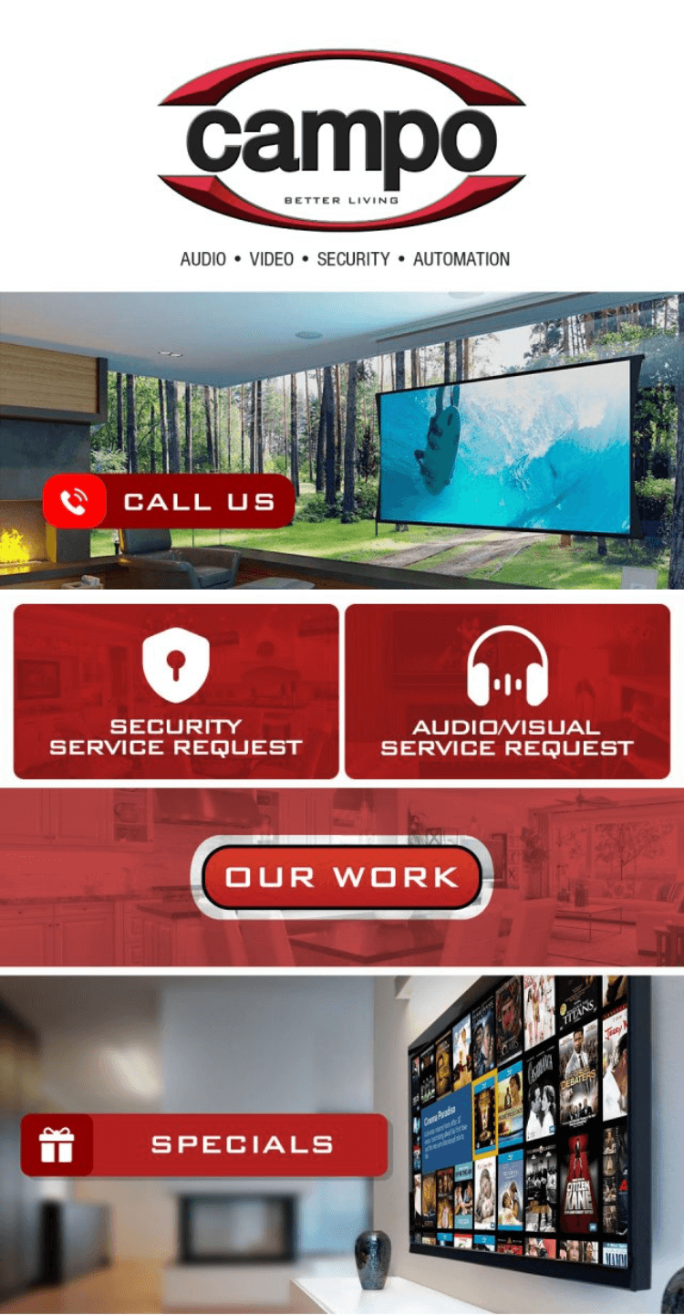 Campo Better Living is a New Orleans based business that specializes in providing homeowners and business operators intuitive control of audio, video, lighting, home networking and security. The Campo Better Living app will quickly direct customers to the appropriate department, provide information about the business and their membership plans and provide direct access to social media.