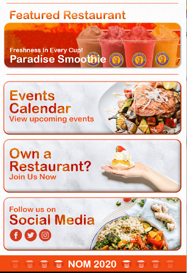 We provide a unique food ordering platform that allows customers to be able to view a menu, order and pay directly from an app, website and social media page. We work both with customers like NOM who are starting this service in their area and also direcly with restaurants if they want their own app. Our platform is commission-free and provides for unlimited orders all for a flat fee.